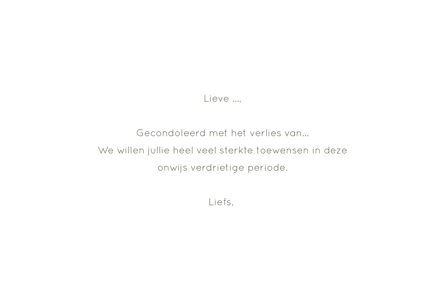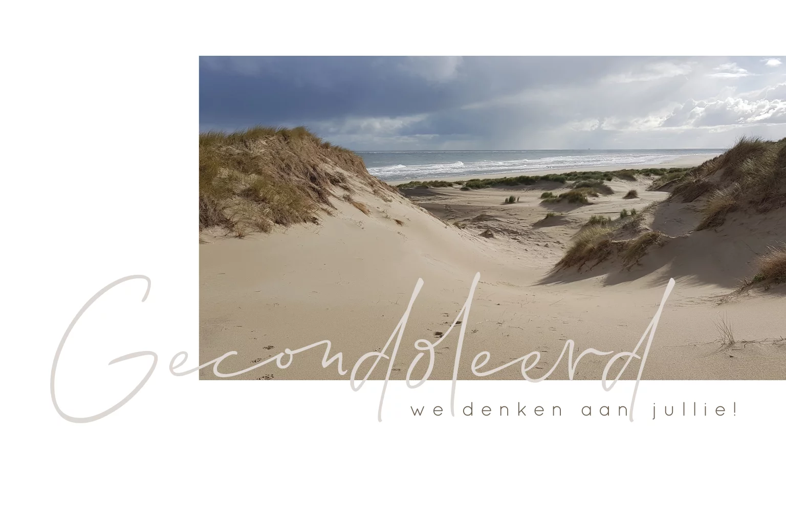 Maak eenvoudig een mooie wenskaart om te condoleren met het verlies. Weet je dat je de foto kunt vervangen door een eigen afbeelding. Een foto die herinnert aan de overledenen.