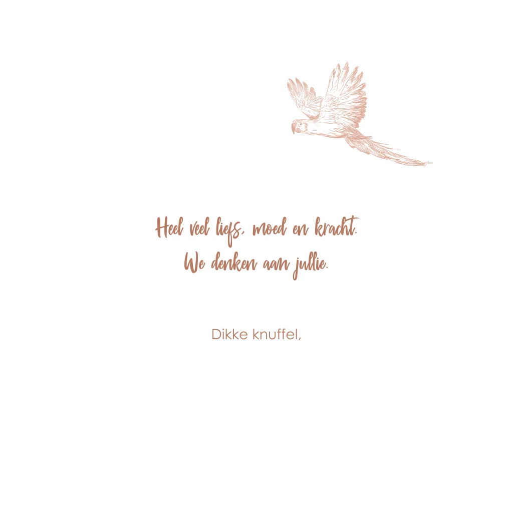 Stuur een lief kaartje om sterkte te wensen. Het verlies van een stil geboren kindje is zo intens verdrietig. Steun en liefde stuur je met dit kaartje, een klein gebaar wat heel veel troost biedt. Alle tekst op de kaart kun je aanpassen naar jouw woorden.